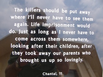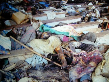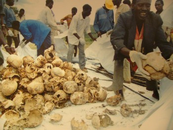 1994 kamen rund 1 Million Rwandis der beiden Ethnien Hutu (80 % der Bevölkerung) und Tutsi (15 %) in gegenseitigen Gemetzeln um. Landesweit wird in vielen Gedenkstätten daran gedacht. Das GISOZI Genozid-Denkmal in Kigali ist das größte und eindrucksvollste dieser Art. Hier sind über 270.000 Tote unter großen Betonplatten bestattet. Immer noch werden sterbliche Überreste aus anderen Regionen hierher verbracht. Im Innern der Gedenkstätte vermitteln Fotos, Filme mit Interviews, Skelette und Textschilderungen intensivste Eindrücke diese Tragödie, die auch die ungezählten brutalen Morde an Babys und Kindern schildern. Aber es wird auch der vielen Millionen Tote anderer vergangener Genozide in der Welt (u.a. die der Deutschen an den Juden, Sinti und Roma) gedacht. Wer weiß z.B. dass bis heute, 2005, in der benachbarten Republik Kongo ebenfalls über 1 Mio. Tote verschiedener Stämme umgebracht werden. Das Gleiche gilt auch für den Sudan! Und das Gemetzel geht weiter!! |