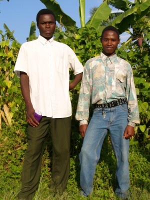 Eine durchschnittliche Bauernfamilie in Rwanda hat sieben Kinder. Mehr als zehn Kinder sind keine Seltenheit. Bauer Joseph Nzabimana hat neun Kinder. Der älteste Sohn hat Mathematik und Physik studiert, es gibt aber zu wenig oder sogar keine Jobs hierfür; jetzt ist er Hausmeister in einem Krankenhaus. Übrigens A: eine unverheiratete junge Frau erhöht ihren "Wert", wenn sie ein oder zwei Kinder mit in die Ehe bringt, denn dies bedeutet Fruchtbarkeit, Lust auf Liebe und die ersten Kinder können schon früh kleine Feldarbeiten verrichten. Übrigens B: in einer glücklichen Ehe ist es Brauch, dass die Eheleute jede Nacht zusammen schlafen. Was soll man ohne elektrisches Licht im Dunkeln auch anderes tun! Kinder und Jugendliche zu fotografieren ist nach einem ersten kurzen Kennenlernen ein Vergnügen, aber auch anstrengend. Die Kinder schauen dicht in die Kamera oder den Camcorder; sie lachen und freuen sich über das digitale Bild in der Kamera. Oft fragen sie: "Mfotora!", das heißt "Fotografieren Sie mich!". Jugendliche stellen sich gerne in Positur, fragen aber auch nach einen Abzug vom Bild (Adresse geben lassen!). Deshalb habe ich über 150 Fotos an verschiedene Adressen nach Rwanda geschickt. Versprochen ist versprochen. Hoffentlich kommen sie auch an! Siehe