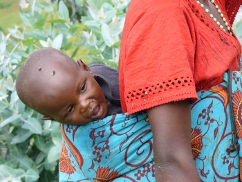 den Rücken der Mutter gebunden. |