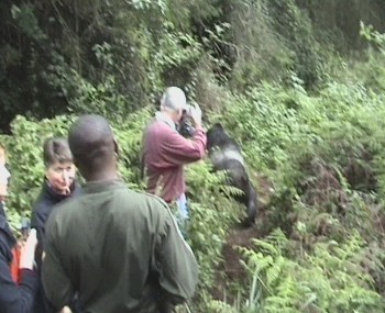 | Aber auch hier nahe den Feldern konnten wir die Berggorillas hautnah beobachten. | |