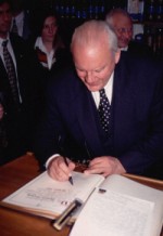 | Einzig in Europa: in Straelen befindet sich das "Europäische Übersetzer-Kollegium". Das EÜK ist Treffpunkt und Arbeitsstätte internationaler freier Übersetzer (näheres siehe EUK-Homepage). Bundespräsident Roman Herzog besuchte im April 1997 diese weltweit bekannte Institution. Hier zwei Fotos des Besuches: | |||